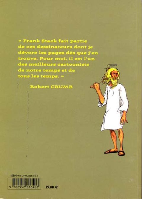 Après 2000 ans d'absence, Jésus revient sur terre pour procéder au Jugement dernier. Il décide de surseoir momentanément à cette rude tâche pour observer ses contemporains. Il passe tour à tour pour un fou, un menteur, un Mexicain et finit en prison, ou incorporé de force dans l'US Army comme réfractaire. L'apprentissage de la civilisation moderne n'est pas de tout repos ! Cette bande dessinée a été créée en 1962 et est considérée comme le premier « comix underground » américain, avant les comix de Crumb et de Shelton. Cet ouvrage reprend l'intégrale des histoires de Jésus dessinées par Frank Stack entre 1962 et 2007. En plus des 2 préfaces dithyrambiques de Robert Crumb et Gilbert Shelton, il contient un inédit par rapport à l'édition américaine parue en 2006 chez Fantagraphics.