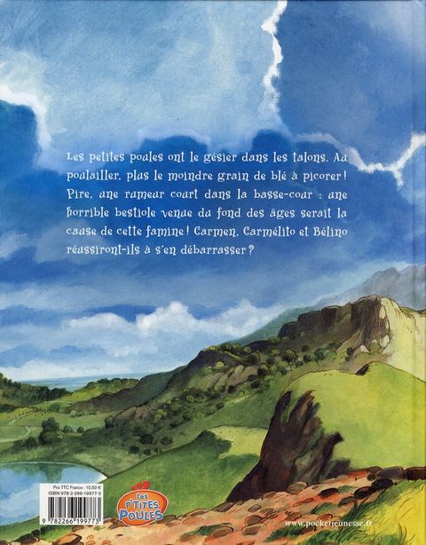 Les petites poules ont le gésier dans les talons. Au poulailler, plus le moindre grain de blé à picorer ! Pire, une rumeur court dans la basse-cour : une horrible bestiole venue du fond des âges serait la cause de cette famine ! Carmen, Carmélito et bélino réussiront-ils à s'en débarrasser ?