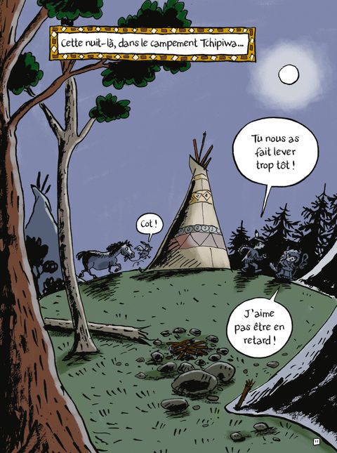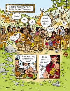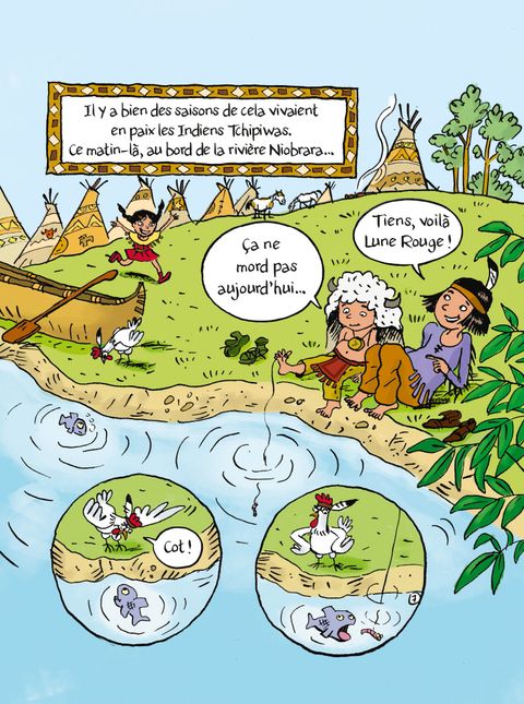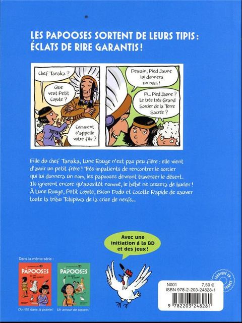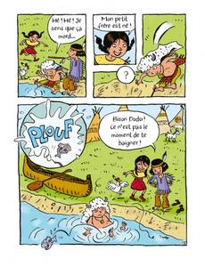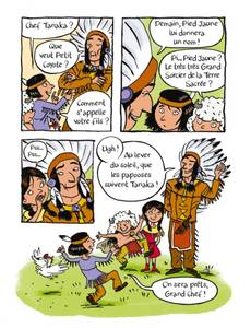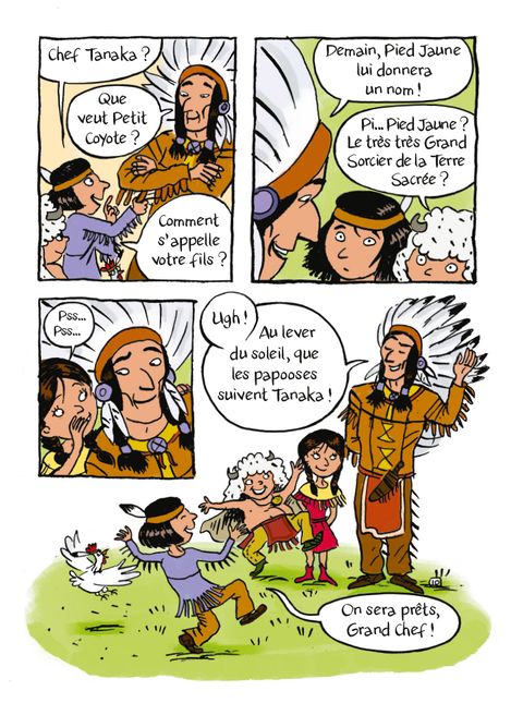 Lune Rouge n'est pas peu fière : elle vient d'avoir un petit frère! Mais il faut vite donner un nom à ce bébé. Et comme il est fils du chef Tanaka, c'est au très très grand sorcier Pied Jaune qu'il revient de le baptiser. Sitôt dit sitôt fait : il s'appellera Grande Montagne! Seulement voilà : le nouveau petit frère de Lune Rouge ne semble pas, mais alors pas du tout goûter le nom que Pied Jaune lui a choisi et, depuis sa cérémonie de baptême, hurle sans discontinuer, au point de mettre en péril la paix de toute la tribu. Il faudra l'intervention salutaire de Bison Dodu et de ses recettes magiques très. personnelles pour que le bébé s'apaise, enfin doté d'un nom qui lui convient : Petit Caillou.