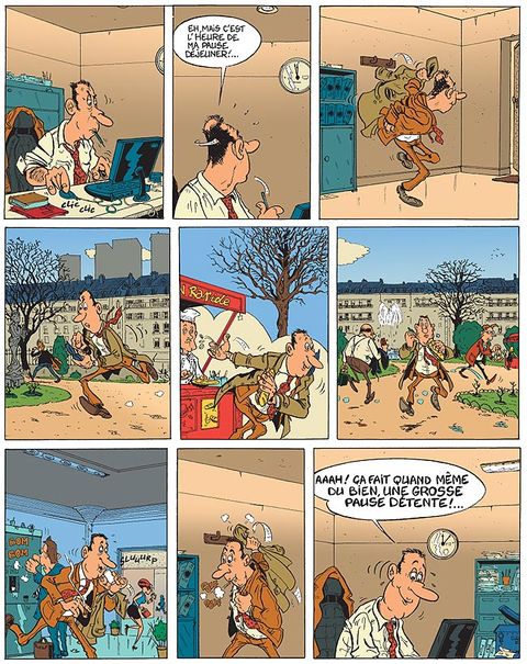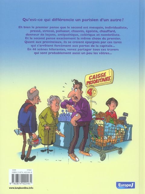 48 pages de gags qui se nourrissent du quotidien des Parisiens et du parisianisme. Tout y passe : transports en commun ou individuels, politesse, civisme, logement, environnement urbain et espaces verts, crèches...Tout y est pour exacerber le caractère singulier du Parisien et une forme de mauvaise foi capitale pour son équilibre. Allons donc à la découverte ou plutôt redécouvrons ensemble les petites manies de ce « Parisien ». Et si d'habitude, il vous fait criser, ici, c'est une crise de rire que vous risquez, alors tenez bon !