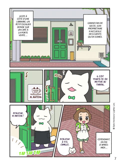 <div style="text-align: justify;">Monsieur Matcha, un gros chat amateur de sieste, n’ouvre son café que le soir. Cependant, à l’heure de la sortie des écoles, il accueille une petite écolière du nom de Camille en attendant que sa mère vienne la récupérer. Et ça tombe bien pour la fillette qui arrive à l’heure du goûter, car son hôte n’est pas qu’un gros dormeur... C’est aussi un cuisinier hors-pair qui adore préparer de petits en-cas. Grâce à Monsieur Matcha et à Camille, découvrez un monde rempli de friandises japonaises et occidentales, souvent revisitées avec brio par le plus gourmand des chats !</div>