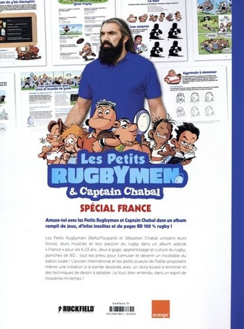 Amuse-toi avec Chabal et les Rugbymen dans un cahier d'activités rempli de jeux, d'infos insolites et de pages BD 100 % rugby ! Sébastien Chabal et les Rugbymen (BeKa/Poupard) unissent leurs forces, leurs muscles et leur passion du rugby dans un cahier d'activités spécial "France" pour les 6-13 ans. Jeux à gogo, infos insolites, culture rugbystique, planches de BD... tout est prévu pour s'amuser et devenir un incollable du ballon ovale ! L'ancien international et les joueurs de Paillar proposent même une initiation à la bande dessinée avec des extraits des Rugbymen, un story-board à terminer et des techniques de dessin à adopter. Le tout, bien entendu, dans un esprit de troisième mi-temps !