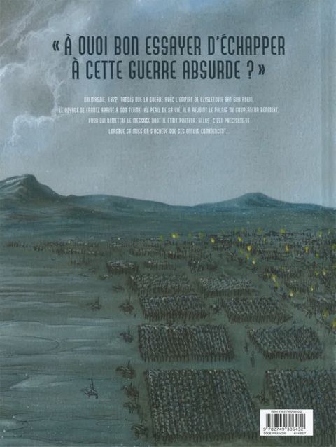 Les deux amis Frantz et Friedrich seraient bien restés compter fleurette à la belle Héloïse, mais la guerre a décidé de leur destin. Friedrich, qui s'est héroïquement engagé pour son pays, sert sur le front, et conquiert Héloïse avec force lettres d'amour. Frantz n'a pas réussi à se dérober à la conscription, mais s'est vu confier une intrigante mission : remettre un message à l'Empereur ennemi, Benedikt de Dalmaszie. Jeune homme oisif et insouciant, il aimerait rester le plus longtemps possible éloigné du fracas de la guerre... Mais dans un tel contexte, tout un chacun se retrouve un pion du jeu de la guerre, de la mort et de l'amour. Une fantaisie baroque et décalée servie par un dessin élégant et fouillé... un diptyque sur l'humanité, à ne pas manquer !