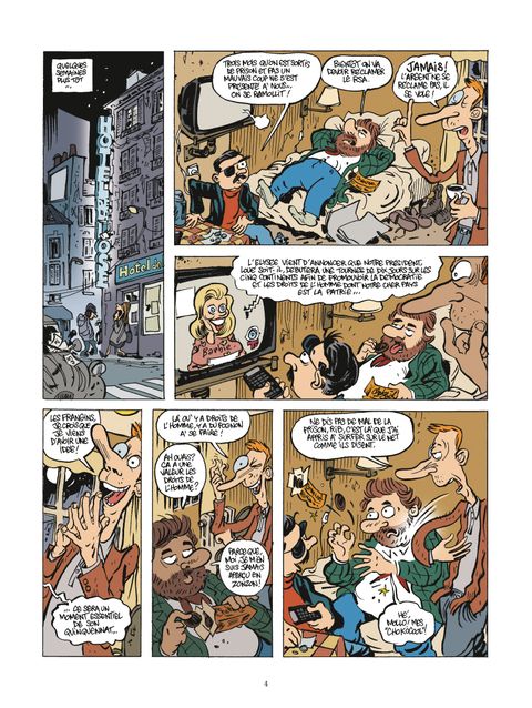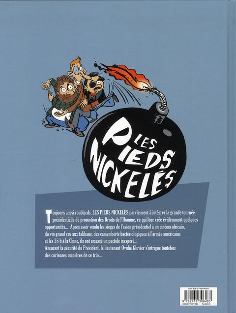 Concours de malhonnêteté entre les Pieds Nickelés et les politiques : l'issue reste floue ! Dans une chambre d'hôtel miteuse, Croquignol, Ribouldingue et Filochard sont comme d'habitude à la recherche d'un moyen, forcément malhonnête, de gagner un peu d'argent. L'annonce d'un prochain voyage présidentiel visant à diffuser les Droits de l'Homme sur les cinq continents donne une idée de génie à Croquignol ! Grâce à Wikipédia© et à Facebook, Ribouldingue se retrouve ainsi dans la peau d'un expert en communication de notoriété internationale et justement spécialisé dans la "vente" des Droits de l'Homme aux opinions publiques ! Parvenus à se faire embarquer dans la tournée présidentielle, nos trois compères vont eux aussi se mettre aux "affaires", requins parmi les requins. Quand trois observateurs intransigeants de notre époque s'emparent, le temps d'une histoire, des escrocs anar les plus connus de la BD, le résultat est explosif ! Dans ce premier volume des Pieds Nickelés vu par Ptiluc, Malka et Luz, les trois complices nous offrent un défouloir jubilatoire !