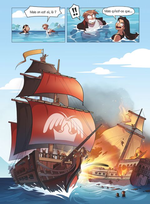 Dooms et Sora au pays des pirates !Grâce au coffre trouvé dans les bois et aux pierres du Cauchemar, Dooms et Sora peuvent désormais passer d’une dimension à une autre. Et cette fois, ils vont faire le grand plongeon ! En atterrissant au milieu d’un gigantesque océan, ils se font embarquer sur un malentendu par… des pirates ! Fait prisonniers, ils n’auront d’autres choix que de se rallier au reste de l’équipage et de troquer leurs habits stylés pour un accoutrement un peu plus vintage. Pour quitter ce monde, il leur faut au plus vite trouver une nouvelle pierre. Mais avant cela, ils vont devoir affronter les corvées et le regard louche des autres matelots. Comment faire pour se sortir de ce pétrin ? Ils ne peuvent tout de même pas passer le reste de leur vie à nettoyer le pont de ce vieux galion… Dans ce second tome nos deux héros côtoient l’univers de la piraterie pour une aventure délirante ! Un récit très drôle et captivant, toujours mis en scène par le dessin punchy et manga de Dreamy, qui séduira autant les trois millions d’abonnés de Dooms et Sora que tous les amateurs d’aventures fantastiques.