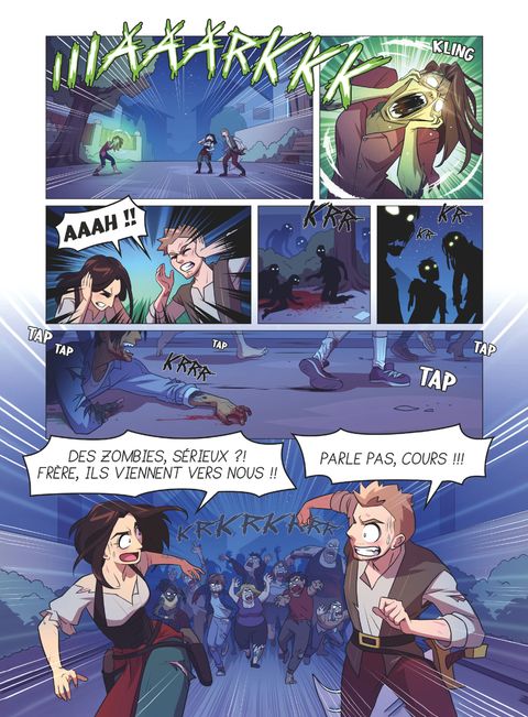 Dooms et Sora contre les zombies ! Grâce au coffre trouvé dans les bois et aux pierres du Cauchemar, Dooms et Sora peuvent désormais passer d’une dimension à une autre. Cette fois, ils semblent être enfin de retour chez eux ! Sauf que quelque chose ne tourne pas rond dans leur ancien quartier… Et ils ne vont pas tarder à comprendre pourquoi : le monde est envahi par des zombies ! Paniqués, Dooms et Sora arrivent à se barricader dans la maison de Sora pour y passer la nuit mais ils vont devoir prendre leur courage à deux mains et sortir enquêter. Ils sont intrigués par un étrange faisceau de lumière vert qui provient de la gare et décident de s’y rendre. Après s’être équipés pour faire face au danger, les voilà prêts à en découdre… Mais alors qu’ils approchent du but, ils se retrouvent encerclés par une horde de zombies ! Sauvés in extremis par un groupe armé, ils vont être escortés dans un camp retranché nommé le « foyer », où un groupe de résistants essaie de survivre. Mais Dooms reste persuadée que la solution à leur problème se trouve au cœur de l’énigmatique lumière verte… Dans ce troisième tome, nos deux héros sont projetés dans un monde post apocalyptique où ils risquent leur peau à chaque coin de rue ! Un récit drôle et captivant, qui se joue des codes du récit de zombies, toujours mis en scène par le dessin punchy et manga de Dreamy, qui séduira autant les trois millions d’abonnés de Dooms et Sora que tous les amateurs d’aventures fantastiques.