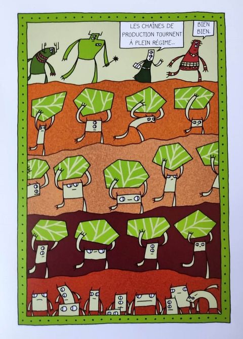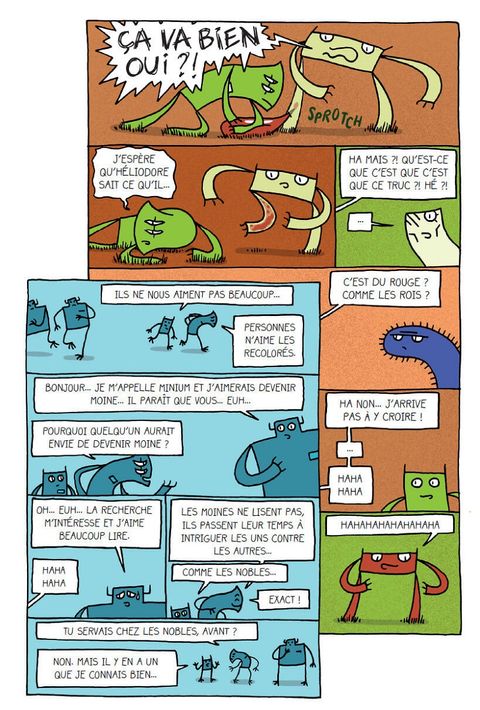Parasites par nature et parias du microscopique empire lémure, Pyrite, Topaze et Corail profitent de l’effondrement de leur civilisation pour changer à jamais leur condition, et provoquer l’avènement d’un ordre social nouveau rêvé. C’est compter sans la puissance des mythes fondateurs de toute société… Les Pigments sauvages, deuxième livre d'Alex Chauvel à notre catalogue après Todd le géant s'est fait voler son slip (2017), est le fruit de plus de trois ans de remue-méninges d'un auteur érudit en anthropologie (le titre est un clin d'oeil à La Pensée sauvage de Claude Levi-Strauss), passionné de microbiologie et fan d'heroïc-fantasy. C'est ce dernier trait de caractère qui confère le ton épique évident des Pigments sauvages, mais à bien y regarder, le commentaire sur le fondement des mythologies et le sous-texte politique font de ce livre, un objet dont on peut se saisir adolescent et qu'on emporte avec bonheur au travers des âges.