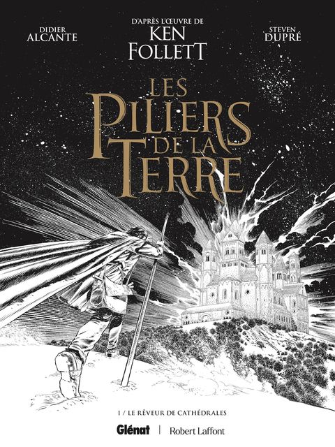 Découvrez aussi Les Piliers de la Terre dans une somptueuse édition Noir & Blanc en grand format, agrémentée d’une nouvelle couverture originale et d’un cahier graphique inédit incluant une sélection des recherches et croquis préparatoires des auteurs.Angleterre, XIIe siècle. Dans un royaume en perdition, morcelé par la guerre et affaibli par la famine, Tom, modeste maître bâtisseur, rêve de construire un jour la plus grandiose des cathédrales… Après avoir perdu son épouse et son nouveau-né durant un hiver des plus rudes, il échappe de peu à une mort certaine grâce à la troublante Ellen. Cette jeune femme rebelle et solitaire, vivant repliée dans la forêt avec son fils Jack, deviendra sa compagne. Ensemble, ils prendront la route, bravant le froid et la misère. Pendant ce temps, le nourrisson abandonné est recueilli par une communauté de moines en proie à une véritable crise religieuse…Didier Alcante (La Bombe, XIII Mystery) et Steven Dupré (Kaamelott, aux éditions Casterman) inaugurent avec ce premier album une adaptation magistrale du célébrissime roman historique de Ken Follett, prévue pour se décliner en une série ambitieuse de six volumes ! Il n’en faudra pas moins pour se (re)plonger dans l’univers de cette saga médiévale épique consacrée aux premiers bâtisseurs de cathédrales. Une histoire aux multiples rebondissements déjà déclinée en série télévisée sous la houlette de Ridley Scott, en jeu vidéo, et même en comédie musicale ! Il ne manquait qu’au neuvième art de s’emparer de la destinée de ces personnages tant aimés du grand public : le prieur Philip, la jeune châtelaine Aliena, l’archidiacre Waleran ou encore l’infâme William… Admirateur inconditionnel de Ken Follett, Didier Alcante adapte avec passion et une redoutable efficacité cette épopée monumentale au langage de la bande dessinée, que Steven Dupré enrichit grâce à sa science de la mise en scène et sa générosité dans les détails. L’album se fonde aussi sur un travail documentaire extrêmement précis et rigoureux supervisé par le docteur en Histoire de l’Université de Namur Nicolas Ruffini-Ronzani.