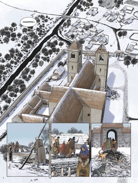 Redécouvrez la fresque monumentale de Ken Follett dans une saga épique en bande dessinée.Angleterre, XIIe siècle. Dans un royaume en perdition, morcelé par la guerre et affaibli par la famine, Tom, modeste maître bâtisseur, rêve de construire, un jour, la plus grandiose des cathédrales… Après avoir perdu son épouse et son nouveau-né durant un hiver des plus rudes, il échappe à une mort certaine grâce à la troublante Ellen. Cette jeune femme rebelle et solitaire, vivant dans la forêt avec son fils Jack, devient sa compagne. Ensemble, ils prennent la route, bravant le froid et la misère. En arrivant à Kingsbridge, ils sont reçus par les moines qui, hélas, ne peuvent leur offrir l’hospitalité. Mais un événement tragique va bientôt bouleverser la vie de la communauté ecclésiastique et sceller le destin de Tom. En pleine nuit, un incendie ravage le toit de l’église ; au petit matin l’édifice n’est plus que cendre. En échange du gite et du couvert, Tom propose aux hommes de foi de s’atteler à la tâche pour reconstruire l’église. C’est le début d’un chantier colossal. Pourtant les suspicions demeurent au sein de la communauté. Comment cet incendie a-t-il bien pu se déclarer ? Au même moment, des voix commencent à s’élever contre la présence d’Ellen au sein du prieuré. Bien décidé à poursuivre sa mission, Tom devra faire un choix déchirant s’il veut être nommé maître-bâtisseur et voir une nouvelle cathédrale sortir de terre…