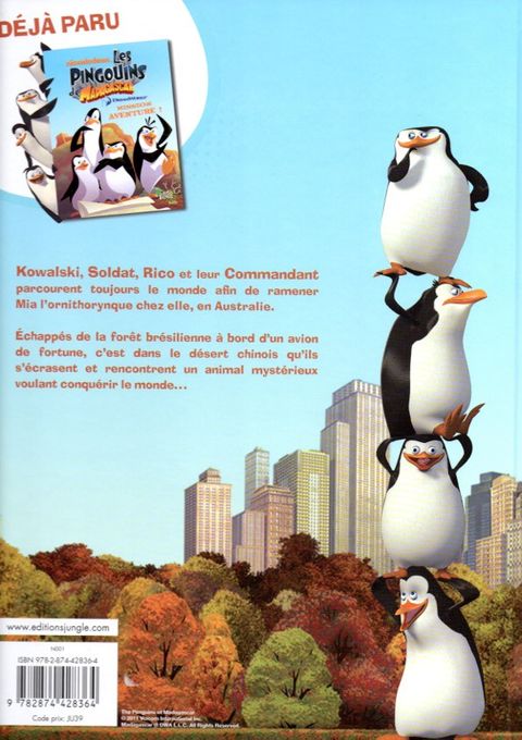 Vous invitent. La raison ? Un étrange animal pas complètement fini (d'après Commandant), vient d'arriver au zoo. Son seul souci est qu'il a laissé ses oeufs, seuls, en Australie. Et voilà, n'écoutant que leur coeur, toute la troupe part à leur secours. Il faudra juste s'enfuir du zoo, prendre un avion, traverser l'Amérique du sud, puis l'Asie... Mais tout est sous contrôle... Enfin presque !