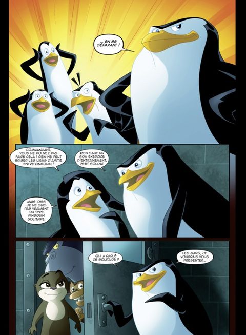 Nos quatre pingouins sont très efficaces quand ils sont ensembles. Mais qu'arrive-t-il quand Commandant décide de mettre en pratique une nouvelle technique d'entraînement ? Séparément, sauront-ils remplir leur mission ? Une aventure décapante et inédite des plus célèbres pensionnaires du Zoo de New York.