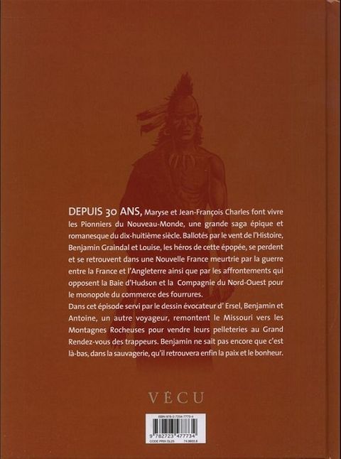 Les trente ans d'une série culte ! Il y a trente ans, Maryse et Jean-François Charles signaient le premier tome de la saga des Pionniers du Nouveau Monde. On y faisait la connaissance de Benjamin Graindal et Billy le Nantais, qui ont vécu leurs destins de chaque côté de l'Atlantique. Dans ce 18e volume dessiné par Ersel et scénarisé par les Charles, Benjamin est chargé de ramener des peaux. Il va repartir avec son ami Antoine vers ce grand nord où, il l'ignore, vivent Louise et Billy dans la Vallée Bleue. Bien des années après leur séparation, ils vont enfin se retrouver... Pour marquer ce trentième anniversaire, cet album offre un cahier de croquis de huit pages, et Jean-François Charles a réalisé la couverture.