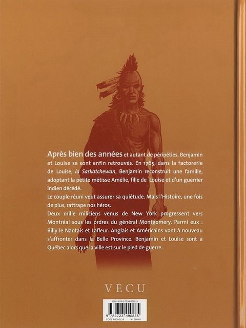 Après bien des péripéties, Benjamin et Louise se sont enfin retrouvés. En 1765, dans la factorerie de Louise, la Saskatchewan, Benjamin reconstruit une vie de famille en adoptant la petite métisse Amélie, fille de Louise et d'un guerrier indien décédé. Le couple réuni veut assurer sa quiétude. Mais l'Histoire rattrape nos héros une fois de plus : deux milles miliciens venus de New York progressent vers Montréal sous les ordres du général Montgomery. Parmi eux : Billy le Nantais et Lafleur. Anglais et Américains vont s'affronter, la guerre est de retour dans la Belle Province.
