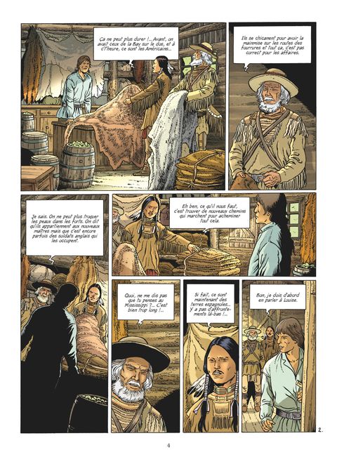 La menace viendra du fleuve Automne 1787, Canada, vallée de la Saskatchewan. La factorerie de Petit Homme regorge de produits que l'on ne peut plus acheminer vers le Québec ou Montréal car depuis l'indépendance des colonies anglaises, la rivalité entre Anglais et Américains pour le monopole des routes s'est durcie. L’unique possibilité pour Benjamin et Ethan est de passer par le Missouri pour rejoindre St-Louis, ville sous gouvernement espagnol. À St-Louis, les deux hommes retrouvent Auguste Chouteau, devenu un négociant prospère. Ce dernier se confie à eux sur les nombreuses attaques des Osages contre ses convois et leur demande de l’accompagner lors du prochain transport vers la Nouvelle Orléans. Le danger est palpable, des Choctaws risquent de donner l’assaut à tout moment… Pour Benjamin le chemin sera encore long et semé d’embauches. Une fois à La Nouvelle Orléans, une tragédie va le dévier de sa route. Lui qui a déjà perdu un camarade, doit affronter la maladie. Mais il pourra compter sur le soutien de Billy dans les heures les plus sombres. Le temps est venu peut-être de se tourner vers un nouvel horizon, La France, où au même moment, les premiers mouvements révolutionnaires voient le jour…