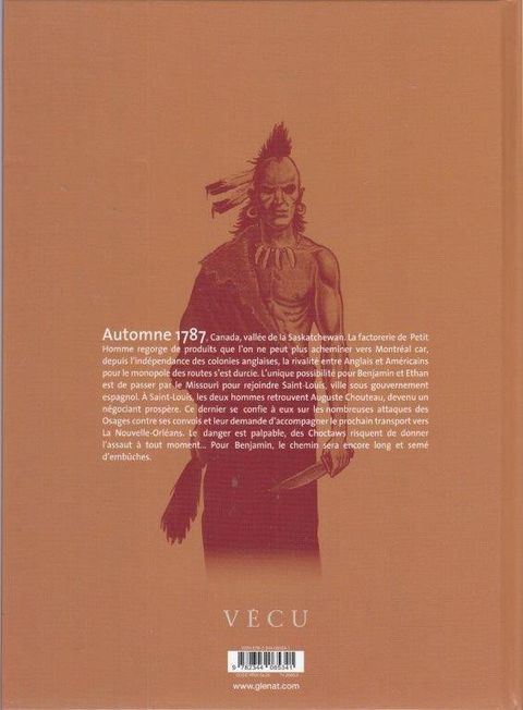 La menace viendra du fleuve Automne 1787, Canada, vallée de la Saskatchewan. La factorerie de Petit Homme regorge de produits que l'on ne peut plus acheminer vers le Québec ou Montréal car depuis l'indépendance des colonies anglaises, la rivalité entre Anglais et Américains pour le monopole des routes s'est durcie. L’unique possibilité pour Benjamin et Ethan est de passer par le Missouri pour rejoindre St-Louis, ville sous gouvernement espagnol. À St-Louis, les deux hommes retrouvent Auguste Chouteau, devenu un négociant prospère. Ce dernier se confie à eux sur les nombreuses attaques des Osages contre ses convois et leur demande de l’accompagner lors du prochain transport vers la Nouvelle Orléans. Le danger est palpable, des Choctaws risquent de donner l’assaut à tout moment… Pour Benjamin le chemin sera encore long et semé d’embauches. Une fois à La Nouvelle Orléans, une tragédie va le dévier de sa route. Lui qui a déjà perdu un camarade, doit affronter la maladie. Mais il pourra compter sur le soutien de Billy dans les heures les plus sombres. Le temps est venu peut-être de se tourner vers un nouvel horizon, La France, où au même moment, les premiers mouvements révolutionnaires voient le jour…