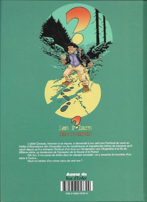 l'abbé georges, historien à ses heures, a demandé à son ami fanfoué de venir en vallée d'abondance pour enquêter sur les mystérieuses et inquiétantes lettres de menaces qu'il reçoit depuis qu'il a entrepris l'écriture d'un livre sur l'émigration en argentine au xixe siècle. dès lors, il s'en passe de drôles dans les alpages enneigés : on y assassine les touristes d'un siècle à l'autre. peut-on hériter d'un crime vieux de cent ans ?.