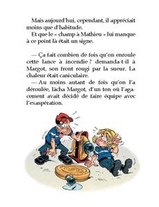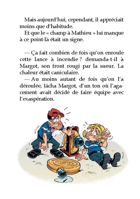 Un roman jeunesse des Pompiers, ça s'arrose ! Ce n'est pas évident d'être un jeune sapeur pompier. On côtoie des tas de pompiers à la caserne, on est habillé comme eux, on sait faire marcher la lance à incendie et pratiquer le bouche à bouche... mais on n'a pas le droit d'aller sur le terrain. Parce qu'on est trop petit, et que c'est trop dangereux. Alors qu'une vague d'incendies ravage les alentours de la ville, Tom, Margot et Ben, tous trois JSP, décident de prouver à la caserne tout entière qu'ils sont capables de faire aussi bien que les "vrais" pompiers.