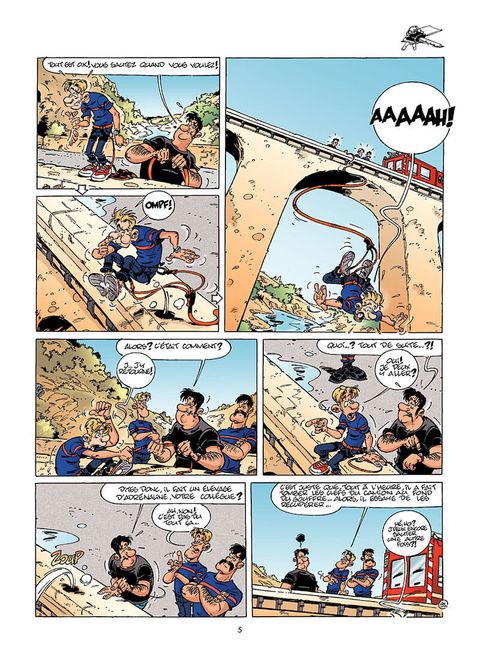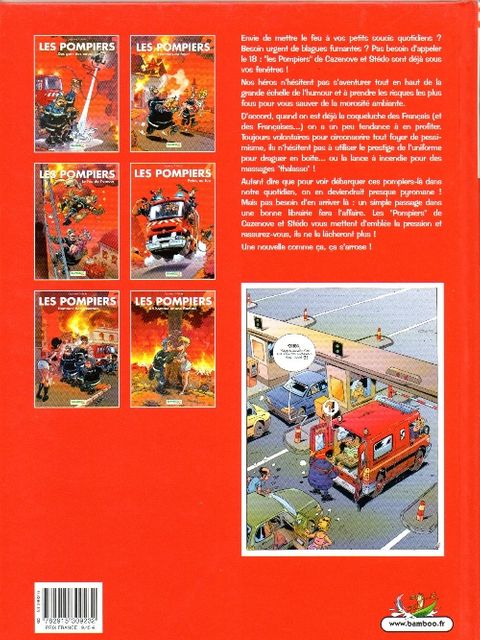 Envie de mettre le feu à vos petits soucis quotidiens ? besoin urgent de blagues fumantes ? pas besoin d'appeler le 18 : "les pompiers" de Cazenove et Stédo sont déjà sous vos fenêtres ! Nos héros n'hésitent pas s'aventurer tout en haut de la grande échelle de l'humour et à prendre les risques les plus fous pour vous sauver de la morosité ambiante. D'accord, quand on est déjà la coqueluche des français (et des françaises...) on a un peu tendance à en profiter. toujours volontaires pour circonscrire tout foyer de pessimisme, ils n'hésitent pas à utiliser le prestige de l'uniforme pour draguer en botte... ou la lance à incendie pour des massages "thalasso" ! Autant dire que pour voir débarquer ces pompiers-là dans notre quotidien, on en deviendrait presque pyromane mais pas besoin d'en arriver là : un simple passage dans une bonne librairie fera l'affaire. Les "pompiers" de Cazenove et Stédo vous mettent d'emblée la pression et rassurez-vous, ils ne la lâcheront plus ! Une nouvelle comme ça, ça s'arrose !