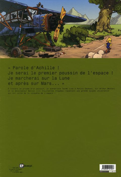 A travers le prisme d'un poussin, le scénariste Tarek (Les 3 Petits Cochons, Sir Arthur Benton) et le dessinateur Batist (Les Chaussettes trouées), racontent une grande épopée universelle qui est celle de la conquête de l'espace !