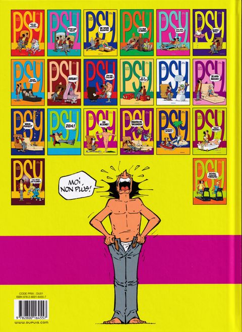 SOS détresse ? Un gars qui se prend pour l'homme invisible, un strip-teaseur amoureux de sa plastique, une femme de ménage à la mère hyper possessive,... Avec de pareils patients, le docteur Médard a de quoi bien remplir ses journées ! Cependant, à force de prêter une oreille attentive à toutes ces situations abracadabrantes, les nerfs peuvent lâcher. Et même ceux de ce bon spécialiste du mental ! Pour ne pas en arriver là, calez-vous dans votre divan et dégustez la dernière livraison des "Psy". Le rire, il n'y a que ça de vrai ! Sur le mode de l'humour, Bédu et Cauvin lèvent une nouvelle fois le voile de l'univers obscur de la psychanalyse. Allongez-vous sur le divan, décontractez-vous et plongez dans ce quinzième album... "Les Psy", c'est moins cher qu'une analyse et surtout beaucoup plus drôle