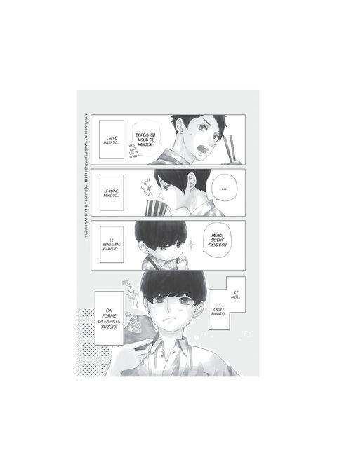 <div style="text-align: justify;">Il y a deux ans, les quatre frères Yuzuki ont soudain perdu leurs parents. Hayato, l’aîné, est le pilier du foyer ; viennent ensuite Mikoto et Minato, nés à seulement onze mois d’écart ; enfin Gakuto, le benjamin, qui est bien trop mature pour son âge. Entre les responsabilités d’Hayato, à la fois professeur et tuteur de ses frères, les chamailleries des deux cadets, qui doivent se partager l’attention de leur aîné, et les rêves d’aventures du petit dernier, la vie de la fratrie n’est pas de tout repos ! Plongez dans le quotidien attachant d’une famille haute en couleurs, comme on en rencontre rarement !</div>