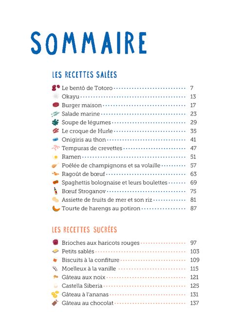 « Chaque fois que nous créons une chose avec amour, espoir ou passion, nous donnons une âme à notre création. » Baron von Gikkingen, Le Royaume des chats. Des brioches aux haricots rouges du Voyage de Chihiro au ramen de Ponyo sur la falaise, découvrez plus d'une vingtaine de recettes présentes dans les films du studio Ghibli !Qu'elles constituent un moment de partage familial, de réconfort dans des situations ardues ou de terribles tentations, les scènes de cuisine ont toujours une importance capitale dans les films de Ghibli. Ces bons petits plats arrivent désormais dans nos assiettes ! Du bentô somptueux de Mon voisin Totoro à la tourte de harengs au potiron de Kiki la petite sorcière, découvrez pour la première fois en France un carnet de recettes inspirées des plus grands chefs-d'oeuvre du studio Ghibli !Les anecdotes & les recettes de films inoubliables : Arrietty : le Petit Monde des Chapardeurs, Le Château ambulant, Le Château dans le ciel, La Colline aux coquelicots, Le conte de la princesse Kaguya, Les Contes de Terremer, Kiki la petite sorcière, Mes voisins les Yamada, Mon voisin Totoro, Nausicaä de la Vallée du vent, Pompoko, Ponyo sur la falaise, Porco Rosso, Princesse Mononoké, Le Royaume des chats, Si tu tends l'oreille, Souvenirs de Marnie, Souvenirs goutte à goutte, Le Tombeau des lucioles, Le vent se lève, Le Voyage de Chihiro.