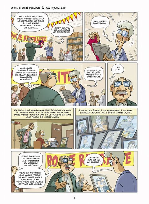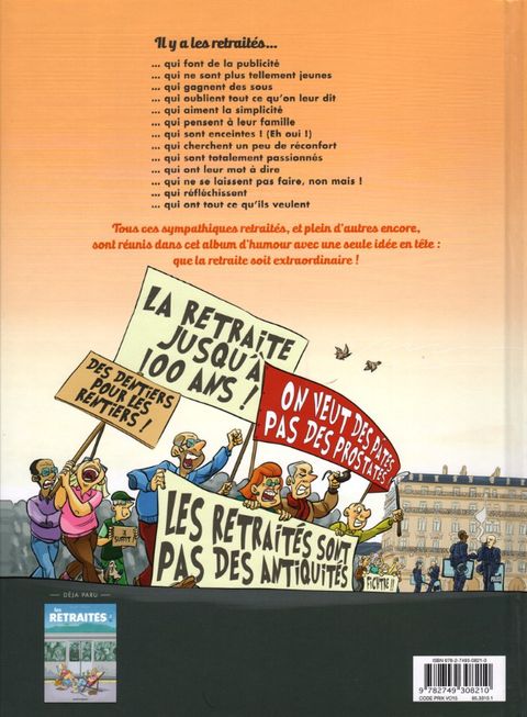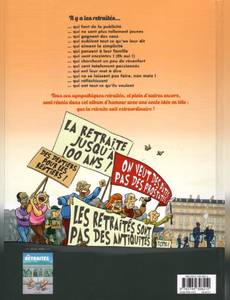 Les retraités sont quinze millions en France, et puisqu'ils n'ont rien à faire de leurs journées, Jacky Goupil et Ohazar se sont dit qu'ils allaient leur proposer une BD rien que pour eux !Traitée sous forme de gags en une planche, cette série raconte les mille et une facettes du plus répandu des métiers : la retraite. Des albums à lire par ceux qui ont déjà les doigts de pied en éventail (il faut bien les occuper), ou à offrir à ceux qui y partent : plus de 600 000 chaque année !