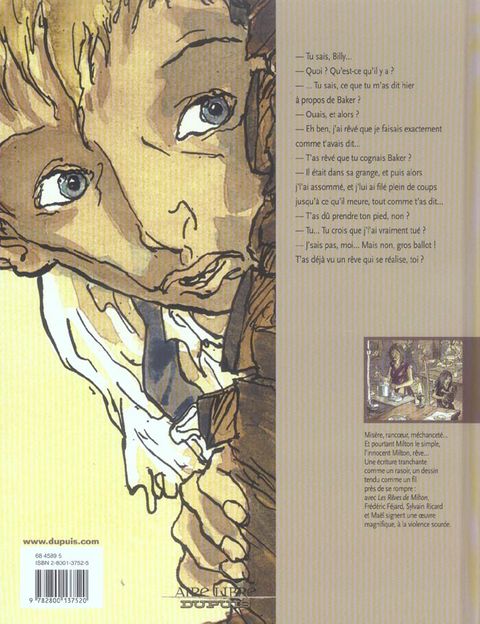 1930, en Caroline du Nord. La Grande Dépression ravage le coeur et détruit la vie des hommes. Les Cry doivent se résoudre à vendre leurs pauvres terres et prendre le chemin de l'exode, en quête d'un meilleur avenir. Sept ans plus tôt, Billy, le fils aîné des Cry, avait assisté à un meurtre. Le meurtrier, un voisin, lui avait fait passer le goût de la curiosité en lui broyant la main. Depuis, il a la rage chevillée au corps. Depuis, il instille le venin de la haine dans l'esprit de son frère Milton. Une force de la nature, Milton, un costaud capable de réduire en miettes n'importe quoi et n'importe qui. Mais un gentil, un doux, un simplet. Qui rêve. Toutes les nuits, Milton rêve d'aider sa famille, rêve de laver les affronts qu'elle subit quotidiennement, rêve de tuer... Mais a-t-on jamais vu les rêves se réaliseroe