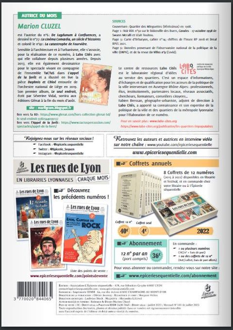 L’histoire et l’identité de Lyon ne se résument pas à ses secteurs touristiques. Souvent écorchés par les médias et les faits divers, nous vous proposons de parcourir ses quartiers populaires. De Vaulx-en-Velin à La Duchère, découvrez les origines de ces paysages urbains et traversez l’histoire de la politique de la ville en région lyonnaise. Une urbanité qui fait aujourd’hui cas d’école en sociologie de l’urbanisme. Le centre de ressources Labo Cités est le laboratoire régional d’idées au service des quartiers. C’est un espace d’informations, d’échanges et de qualification pour les acteurs de la politique de la ville intervenant en Auvergne-Rhône-Alpes : professionnels, élus, institutionnels, partenaires locaux, réseaux associatifs, chercheurs, formateurs, conseillers citoyens… Fabien Bressan, géographe-urbaniste, adjoint de direction à Labo Cités, a apporté sa connaissance et son expertise de la politique de la ville et des quartiers de la métropole lyonnaise pour l’élaboration de ce numéro. Pour en savoir plus : www.labo-cites.org