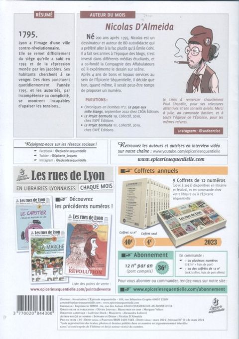 1795. Lyon a l’image d’une ville contre-révolutionnaire. Elle se remet difficilement du siège qu’elle a subi en 1793 et de la répression menée par les jacobins. Ses habitants cherchent à se venger. Des rixes ponctuent quotidiennement l’année 1795, et les autorités, par incompétence ou complicité, se montrent incapables d’apaiser les tensions…