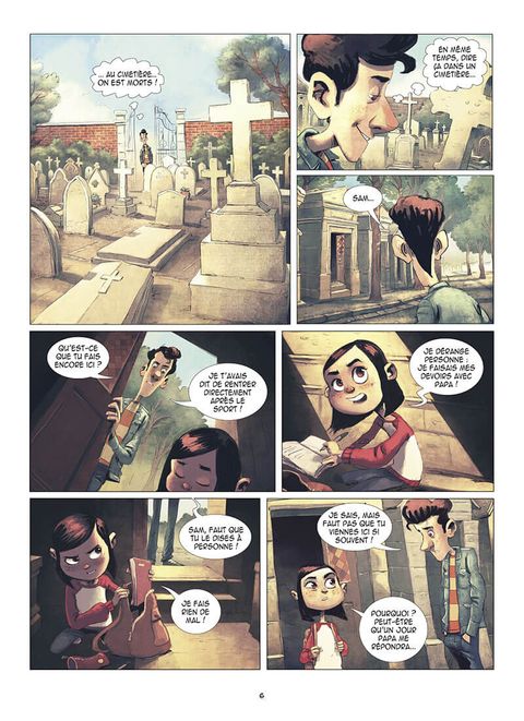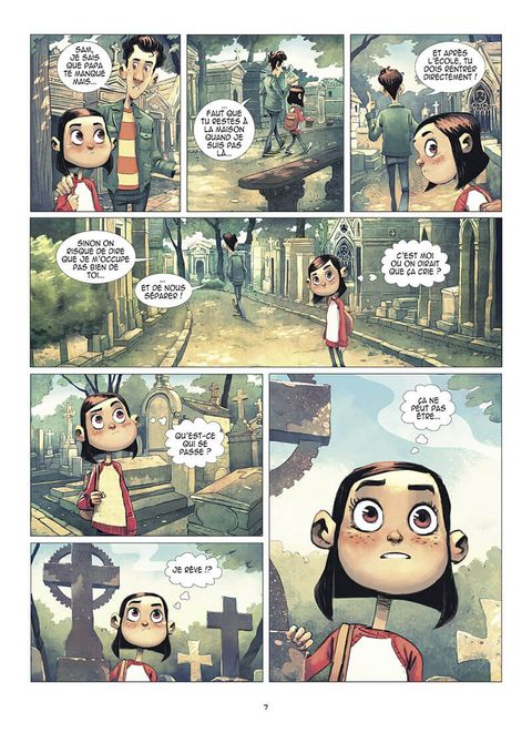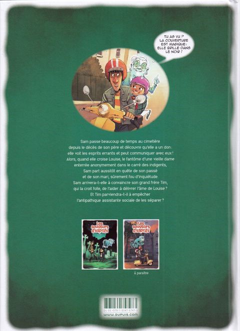 La petite Sam a un don : elle parle aux esprits du cimetière. Lorsqu'elle croise Louise, le fantôme d'une vieille dame perdue et enterrée anonymement dans le carré des indigents, elle décide donc de l'aider à retrouver son passé et surtout son mari, qui doit s'inquiéter de sa disparition. Tant pis si Tim, son grand frère qui la garde depuis la mort de leur père, la croit folle de parler ainsi à son amie imaginaire ! Et tant pis si l'assistante sociale se dit qu'il ne serait pas inutile de séparer ces deux jeunes gens un peu bizarres... Bienvenue dans la nouvelle série de Carbone (La Boîte à musique, Dans les yeux de Lya, La Sentinelle du Petit Peuple), ici accompagnée de Julien Monier. Une saga jeunesse à la fois inventive, touchante et pleine d'humour !