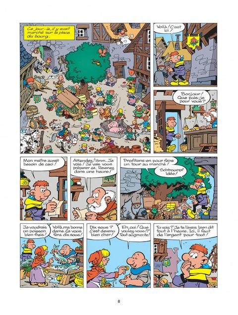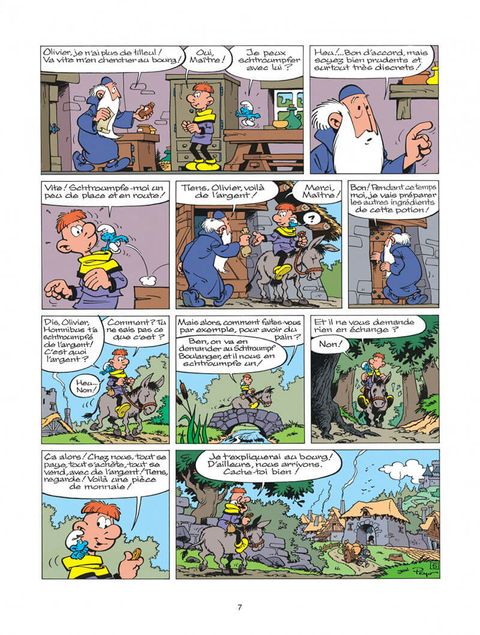 L’un des albums des plus cultes de la série des petits êtres bleus de Peyo. Dans cette histoire, les Schtroumpfs, s’aventurent dans le monde des Hommes afin de trouver un remède pour le Grand Schtroumpf, malade. Découvrant ainsi la monnaie et ses possibilités, ils décident d’instaurer le même système au sein de leur village, pas sans conséquence sur la tranquillité des habitants...