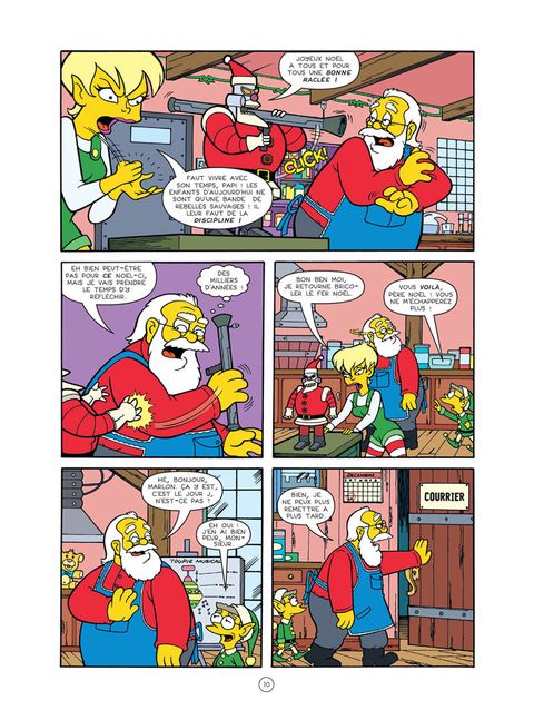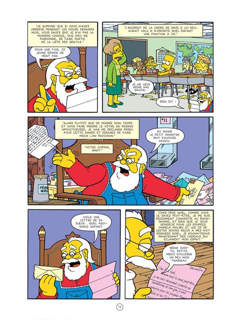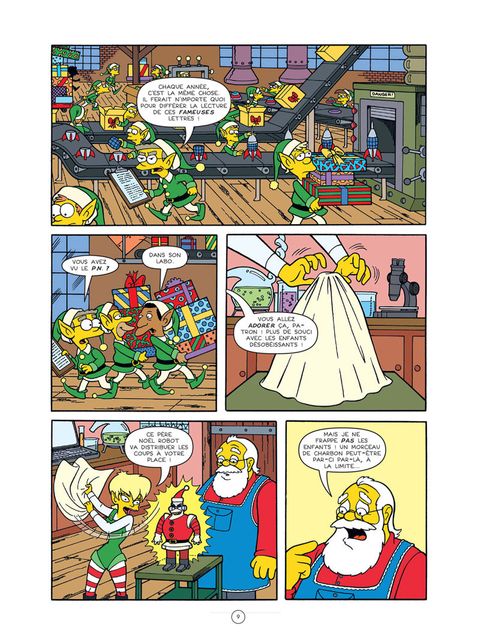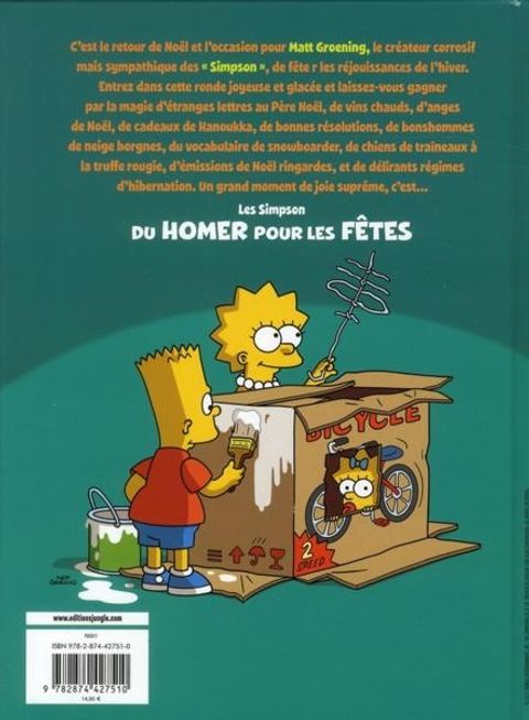 Les Simpson savourent les joies de l'hiver et des fêtes de Noël, mais toujours à leur manière. Histoires rocambolesques, mode de vie impensable, découvertes sacrées, il n'y a qu'eux pour nous faire rire des moments simples de la vie. Un deuxième tome pour ce hors-série annuel qui ravira les enfants autant que les parents. Off the grid La facture d'électricité est particulièrement élevée cet hiver et les Simpson doivent absolument faire des économies d'énergie. Plus de chauffage, plus de lumière et surtout plus de télévision. La vie est dure mais la famille tient le coup et inspire les habitants de Springfield à faire de même, au grand regret de M. Burns qui détient les centrales électriques de la ville... 'Twas the Eve Before Christmas La veille de Noël, Homer et Marge s'apprêtent à se coucher lorsqu'une chose très importante qu'ils avaient oubliée se rappelle à leur souvenir. Les cadeaux ! Comment ont-ils pu oublier d'acheter des cadeaux de Noël à leurs enfants et les mettre sous le sapin ?! Tandis qu'Homer cherche désespérément un objet dans la maison pouvant faire office de présent, un bruit étrange se fait entendre dans la cheminée. Homer s'approche pour voir de quoi il s'agit et voit apparaître des bottes. Se pourrait- il que le père Noël existe vraiment ?