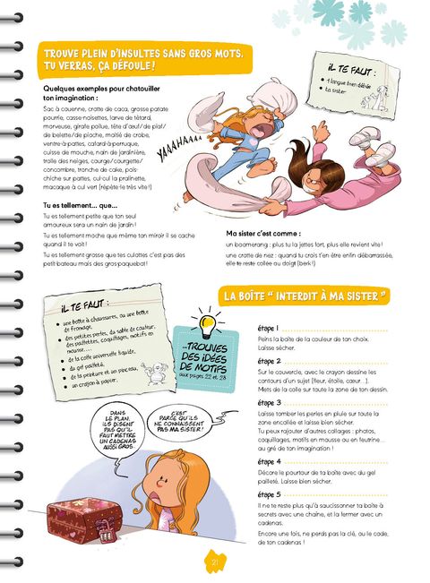 Les Sisters : mode d’emploi, c’est un vrai guide de survie avec sa sister ! Un condensé de précieux conseils et d’idées survitaminées, réservé aux filles :- Les réponses aux grandes questions que se posent les filles : comment vivre en harmonie avec sa soeur et ses parents, comment partager sa chambre avec sa sister…- Des ateliers de loisirs créatifs : customiser ses vêtements, fabriquer un journal intime, des ID KDO…Le tout illustré par des gags inédits des Sisters !