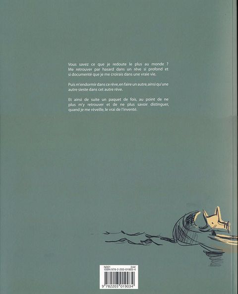 Vous savez ce que je redoute le plus au monde ? me retrouver par hasard dans un rêve si profond et si documenté que je me croirais dans une vraie vie. Puis m'endormir dans ce rêve, en faire un autre, ainsi qu'une autre sieste dans cet autre rêve. et ainsi de suite un paquet de fois, au point de ne plus m'y retrouver et de ne plus savoir distinguer, quand je me réveille, le vrai de l'inventé.