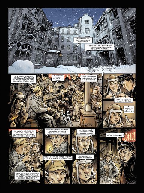 "Les souris de Leningrad", ce sont Maxim, fils d'un père riche ; Pyotr, enfant d'intellectuels envoyés au Goulag ; Grigory, fils d'un pilote exécuté par le gouvernement et Anka, fille d'un violoniste. Nous retrouvons les quatre adolescents en plein hiver 1941. En échange de nourriture, Anka prétend aimer Maxim. Elle donne ses propres bons de rationnement à Pyotr, qui fuit la justice. Grygori n'arrive pas à croire que sa mère aime Konstantin, le père de Maxim, qui leur donne de la nourriture. Les amis jurent de s'évader de la ville en joignant les camions qui risquent une traversée de 70 km sur un lac gelé pendant que l'artillerie allemande leur tire dessus. Mais les quatre amis n'ont que trois billets pour la traversée...