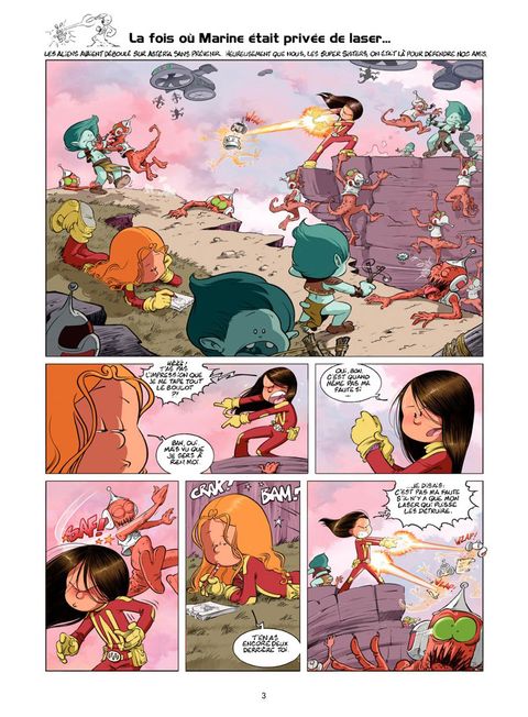 Quand le danger menace et que les Super Sisters s'en mêlent, ça ne rigole pas ! Enfin, si, ça rigole, mais c'est pas fait exprès. Dragons de l'espace, sorciers maléfiques, robots géants, animaux mutants, les Super Sisters n'ont peur de rien, si ce n'est de louper leur série télé préférée (ben oui, faut pas perdre de vue l'essentiel).