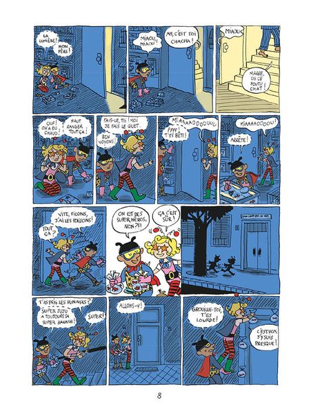 Super Aglaé et Super Juju font partie de ces héros qui n'endossent leur uniforme de sauveurs que la nuit ! Quand le soir tombe, ils vont «faire le bien» dans la ville ou tout au moins essayer, car leurs capes n'ont en fait rien de magique. Aglaé et Juju grandissent dans une petite ville, vont à l'école, ont des copains. Comme tous les enfants ! Mais ils ont une particularité : ce sont des justiciers du bien. Dans la journée, ils observent les gens autour d'eux et dès que leurs valeurs sont mises à mal, ils n'ont de cesse d'intervenir. Le hic ? Ce ne sont pas de VRAIS super héros ! Et ils ne comprennent pas tout au monde des adultes. Résultat, ils font beaucoup de gaffes, se paient de belles frayeurs, et parfois doivent réparer leurs bêtises. Un encouragement à regarder autour de soi et agir pour les autres, mais en version humoristique et anti moralisatrice !