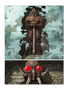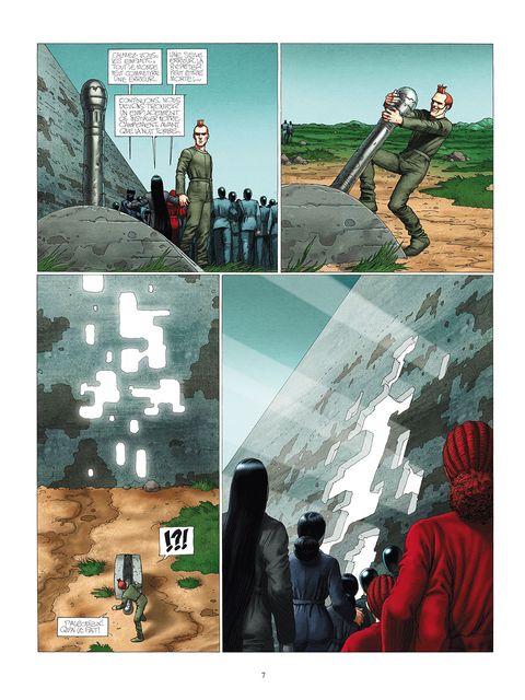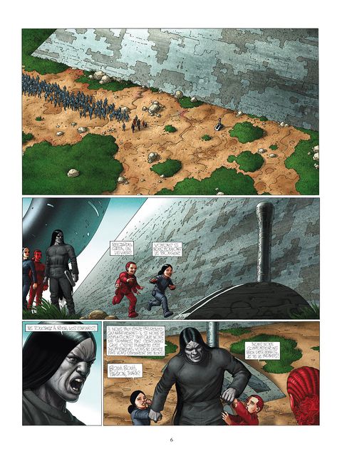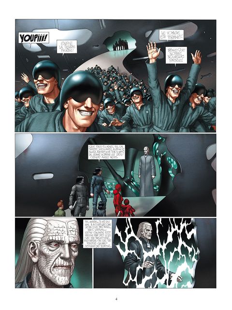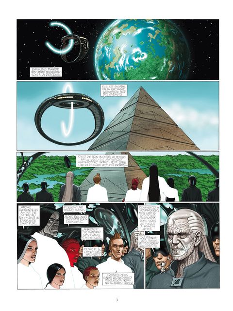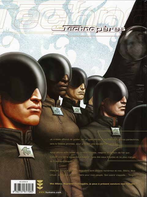 je m'étais efforcé de guider, tel un paléo-moïse, mes 500 000 jeunes pantechnos vers la galaxie promise, pour y fonder une société harmonieuse. nous allions enfin fouler ce nouveau monde, respirer le parfum de l'ai pur, cultiver une terre saine, nous baigner dans des eaux limpides et ne plus manger de fruits synthétiques. mais les dangers qui nous attendent sont encore nombreux et moi, albino, être virtuel, je ne peux plus rien faire pour mon peuple. son souvenir s'appelle... tinigrifi ! moi albino, suprême technopère, je peux à présent conclure mon histoire...