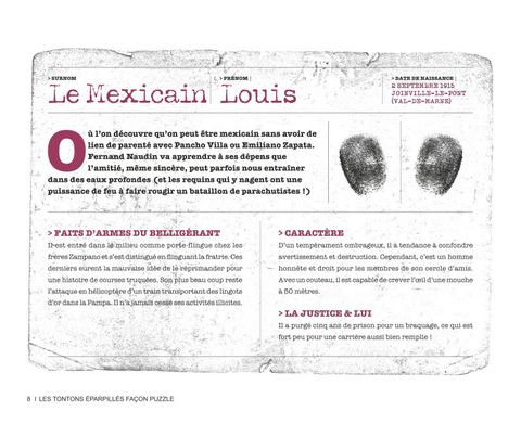 « Ça faisait longtemps que Charles [Da Costa] et moi avions envie de rendre hommage à ce chef-d'oeuvre des sixties. Nous avons cherché une manière originale de le faire et je crois que nous avons atteint notre but. Beaucoup de gens se sont emparés de ce film à des fins mercantiles, bien souvent avec un résultat désastreux. pour rester polis. Notre amitié avec Georges Lautner et notre passion pour cet incontournable du cinéma nous ont guidés pour que le résultat soit un beau cadeau à offrir à tous ceux qui adorent les Tontons Flingueurs. » Philippe Chanoinat Les Tontons éparpillés façon puzzle : douze caricatures de scènes cultes du film, douze textes, pour un hommage sincère et amusant à ce film qui restera à jamais gravé dans l'imaginaire des Français.