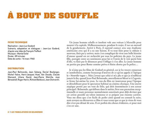 Un bel hommage pour le Magnifique ! Jean-Paul Belmondo, « Bébel » pour les intimes, est probablement l'une des plus grandes stars du cinéma français. Égérie de la Nouvelle Vague puis icône magnifique du film d'aventure populaire, il a tourné pour la plupart des grands réalisateurs français, d'Alain Resnais à Louis Malle, en passant par Georges Lautner, Claude Chabrol ou Jean-Luc Godard. Le Professionnel, L'Homme de Rio, À bout de souffle, Un singe en hiver, Peur sur la ville... On ne compte plus le nombre de ses oeuvres qui ont marqué à tout jamais, et dans des genres très variés, le cinéma français. À tout seigneur tout honneur, cet ouvrage - préfacé par Belmondo lui-même ! - retrace donc de manière amoureuse et subjective 30 films de la carrière prolifique du maître. Découvrez ses tribulations dans le monde du 7e Art à travers un hommage réjouissant, en textes et en dessins.