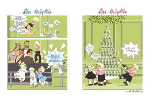 De nouvelles aventures des triplés, qui trafiquent les post it de leur maman, qui cassent une pyramide de coupes de champagne, qui se mettent des suppositoires dans les oreilles lorsqu'ils ont une otite, etc.