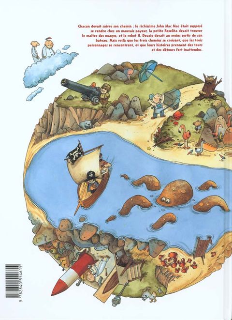 Chacun devait suivre son chemin : le richissime john mac mac était supposé se rendre chez un mauvais payeur, la petite roselifa devait trouver le maître des nuages, et le robot h. Deuzio devait au moins sortir de son bateau. mais voilà que les trois chemins se croisent, que les trois personnages se rencontrent, et que leurs histoires prennent des tours et des détours fort inattendus.