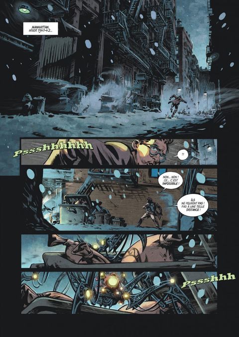 "Rumeurs de débarquement de sous-marins allemands sur la côte est... Mystérieuses apparitions, et disparitions, sur les bords de l'East River... Mise sous tutelle des laboratoires d'Edison par le FBI... Expérimentations de terribles armes secrètes par les forces japonaises dans le Pacifique... Pour celui qui sait voir au-delà des apparences de calme trompeur, tout démontre que New York sera bientôt plongée au coeur des événements qui ravagent aujourd'hui le reste du monde... Et nous sommes toujours sans nouvelles de Nikola Tesla, probablement le seul savant dont l'originalité et les inventions géniales sont susceptibles de nous fournir une aide décisive dans cette guerre destructrice ! New York, un été 1942... Une enquête de T.S. Billing, notre reporter du Daily Worker Au même moment, le jeune Travis emménage avec sa mère dans un hôtel meublé de Manhattan. Il ne sait pas encore que son énigmatique voisin de palier va l'entraîner dans une aventure aux ramifications scientifiques terribles et galvanisantes.