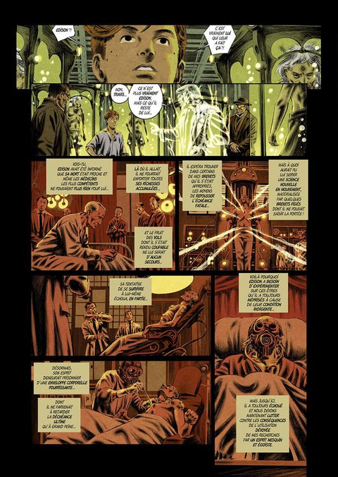 Les forces japonaises déchaînent une pluie de robots sur New York, mais en réalité, c’est un autre combat qui se joue. Héritier des fantômes de Tesla et des grands scientifiques de son temps, Travis doit empêcher Edison et ses alliés nazis de faire basculer le monde dans un nouvel âge d’obscurantisme. Pour cela, il reçoit l’aide inattendue de son « pater ex machina ». Ensemble, père et fils parviendront-ils à écrire une conclusion heureuse à cette uchronie politico-scientifique ?
