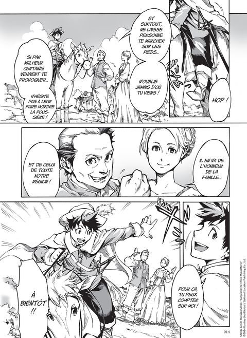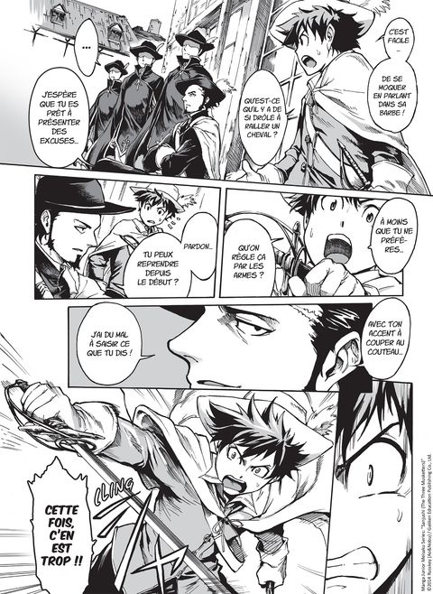 <div style="text-align: justify;">Quand le jeune d’Artagnan quitte sa Gascogne natale pour Paris, il n’a qu’un rêve en tête : devenir mousquetaire. En chemin, son caractère fougueux va attirer sur lui les foudres des gardes du Cardinal de Richelieu, lui permettre de se lier d’amitié avec trois de ses glorieux aînés, Athos, Porthos et Aramis, et même de croiser l’amour en la personne de Constance, lingère de la Reine… Mais il est loin de se douter que ces rencontres l’amèneront à se rendre jusqu’à Londres, afin de déjouer un complot qui pourrait mettre la France en péril !Un pour tous, et tous pour un !Retrouvez les grands classiques de la littérature en version Manga !</div>