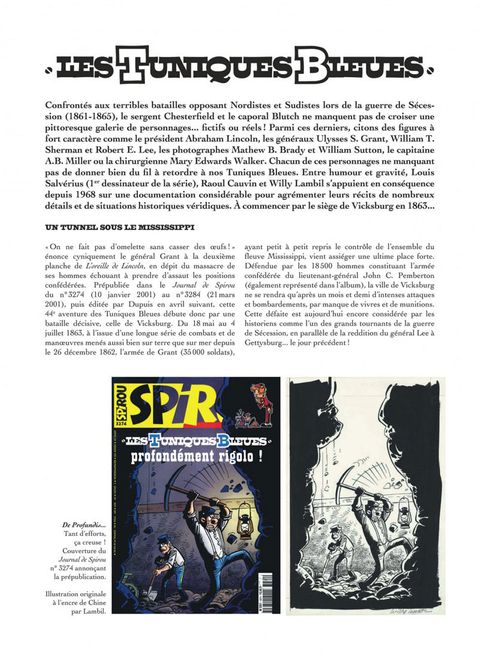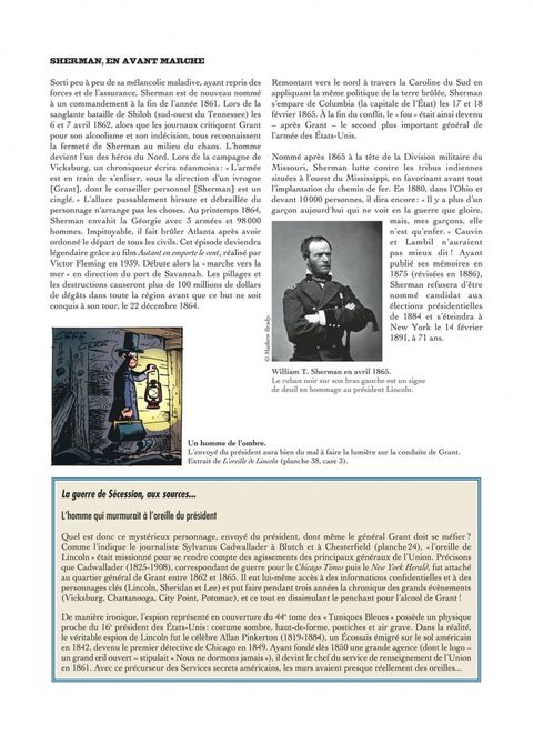 Ce second volume du diptyque consacré aux personnages réels se penche sur les figures, souvent controversées, de John C. Pemberton, de William Tecumseh Sherman et du capitaine A.B. Miller à travers deux albums, "L'oreille de Lincoln" et "Colorado Story". Fort de ses recherches et de ses illustrations, Philippe Tomblaine offre dans son dossier un portrait didactique de ces personnages en les replaçant dans le contexte historique qui fut le leur, au coeur de la guerre de Sécession. Un ouvrage indispensable pour tous ceux qui ont déjà accompagné le sergent Chesterfield et le caporal Blutch dans leurs aventures !