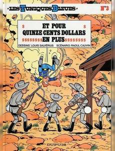 AcheterAlbum créé dans la bedetheque le 31/05/2001 (Dernière modification le 22/08/2021 à 22:19) par xof 24 Les tuniques Bleues 3. Et pour quinze cents dollars en plus Une BD de Raoul Cauvin et Louis Salvérius chez Dupuis - 1973 01/1973 44 pages Format normal 30 à 50 euros 450 Prépublication dans Spirou (1776 à 1795) en 1972. Le sergent Chesterfield et le caporal Blutch arrivent dans leur nouvelle affectation où le général cherche désespérément des volontaires pour une mission périlleuse. Alléchés par les quinze cents dollars de prime, nos deux acolytes signent sans réfléchir. Leur mission est simple : s’infiltrer chez les Sudistes et détruire voies ferrées, dépôts de munition, ponts, récoltes de coton afin d’affaiblir l’ennemi. Pour ce faire, deux mercenaires mexicains, José et Pedro qui connaissent parfaitement cette région, les accompagneront dans cette expédition…