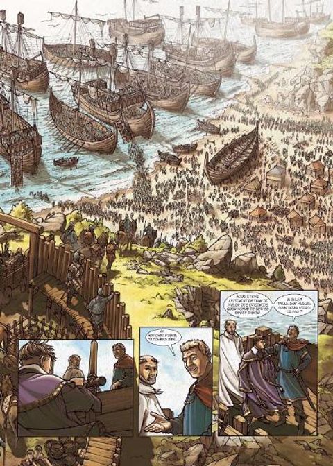 LA NOUVELLE FICTION HISTORIQUE DU SCÉNARISTE DE SERVITUDE ! C'est aux environ de l'An Mil que les drakkars de Leif Eriksonn atteindront une nouvelle terre. De cette terra incognita, Vinland, les Vikings ramèneront la carte décrivant leur parcours. Un parchemin qui modifiera le destin de la chrétiente?. La Bible ne dit-elle pas que l'homme fut chassé du paradis... loin à l'est d'Eden. Nombreux seront les fous de Dieu qui tenteront de s'emparer de ce qui pourrait être le chemin vers leur rédemption. C'est ainsi que la carte du nouveau monde devait changer la face de l'ancien. Guillaume aurait-il gagne? cette bataille si, par l'acharnement de son frère Odon, une certaine branche de l'Église n'avait pas tout mis en oeuvre pour soustraire cette carte au roi des vikings Hardrada ? Trahison, pouvoir des reliques (à moins qu'il ne s'agisse que de heureux hasards) sont au programme de la plus grosse bataille de l'histoire du Moyen Âge.