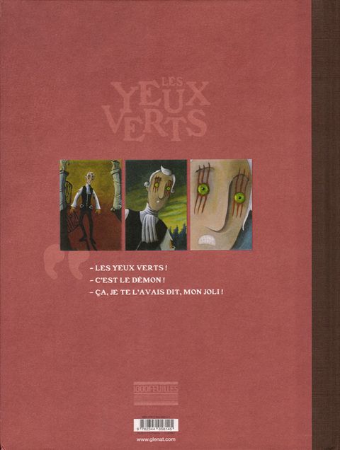 Le regard qui tue, une aventure fantastique par les auteurs de Peau d’Homme.1793. Le vicomte Narcisse de Rougemont, en exil à Londres, est mandaté pour une mission de la plus haute importance : faire sortir le père Anselme de France, où la Révolution gronde toujours. Mais le jeune aristocrate va se trouver rapidement confronté à d’étranges phénomènes. Pragmatique, il refuse de se laisser déconcerter par des superstitions obscurantistes ! Pour peu que l'on garde « son flegme », comme disent nos cousins britanniques, il est possible de trouver une explication rationnelle pour tout. Vraiment ? Même aux sorcières ? Même aux femmes à corps de félin ? Alors que son chemin croise celui de deux sœurs qui se disputent une même paire d’yeux verts, Le vicomte réalise que sa mission est de toute autre nature. Sa vie bascule quand il se retrouve à son tour, en possession de ces yeux maléfiques ! Commence alors une nouvelle vie pour Le Vicomte… mais les Anglais ne comptent pas en rester là. En compagnie de Mister Smith, un petit yorkshire à la langue bien pendue, ils sont prêts à tout pour récupérer le pouvoir surnaturel des yeux verts…Ouvrez grand les yeux pour redécouvrir la première collaboration d’Hubert et de Zanzim. Avant le succès de Peau d’Homme et une pluie de récompenses (200 000 ventes en France, plus de 15 prix), Les Yeux Verts, paru initialement en 2002, mêle avec brio poésie et onirisme. Conte fantastique à l’atmosphère singulière, il annonce les prémices d’un duo talentueux (Ma vie posthume, La Sirène des Pompiers et bien sûr Peau d’Homme…) et dévoile le style unique des deux auteurs, Zanzim travaillant ici en couleurs directes. En 2023, les éditions Glénat rééditent ce diptyque savoureux et y ajoutent des bonus conséquents, dont les prémices d’un tome 3 qui n’a finalement jamais vu le jour (14 planches finalisées, un story-board et un scénario complets).